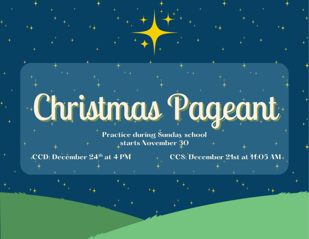 South: The Pageant is Sunday 12/21 during the 11:05 service.